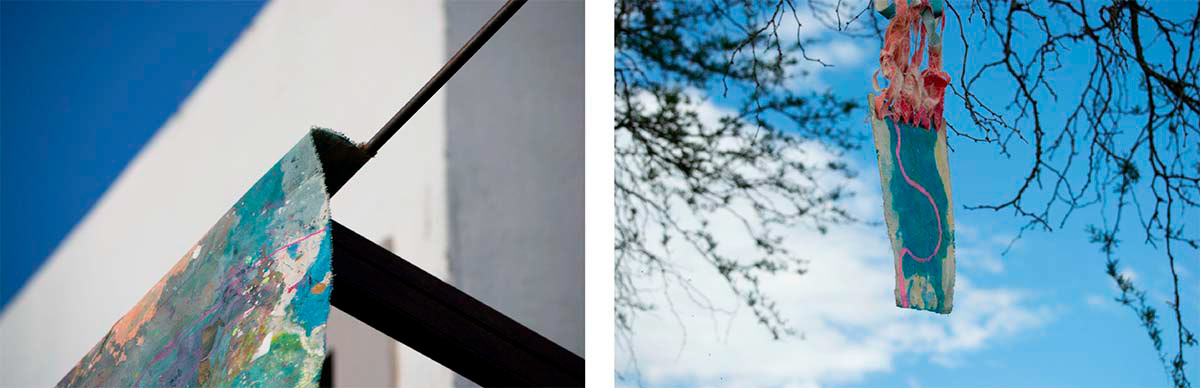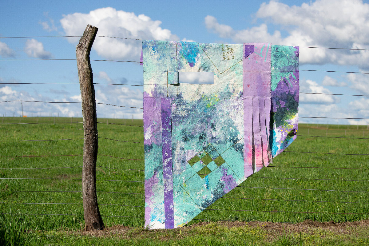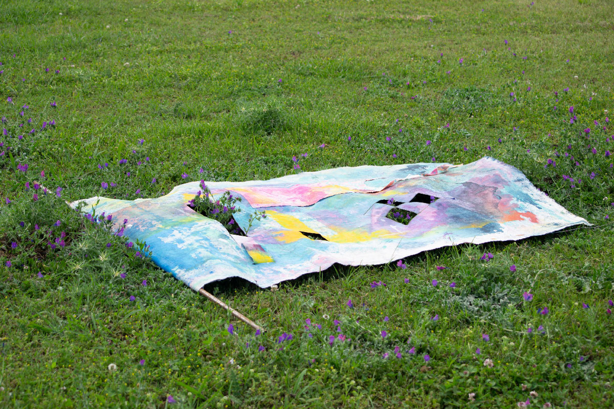 A veces me pregunto si son ellos, los colores, o lo impredecible del clima lo que me hace permanecer aquí, entonces me encuentro a mi misma como una chamana probando mis habilidades (basada en mis datos históricos estadísticos) para predecir. Cada día es una capa nueva sobre lo que ya existió. De construyo y construyo sin orden ni permiso. En esa acción se forman mis mapas emocionales, obras de arte, lienzo, rajadura, tejido, memoria y acción, una performance donde se conjuga todo lo que soy, la mujer de campo, la madre, la economista, la artista. En esta performance íntima acudo a mis archivos, me doy el derecho de rescatar, archivar y sanar, aferrándome a mi territorio como espacio de seguridad.