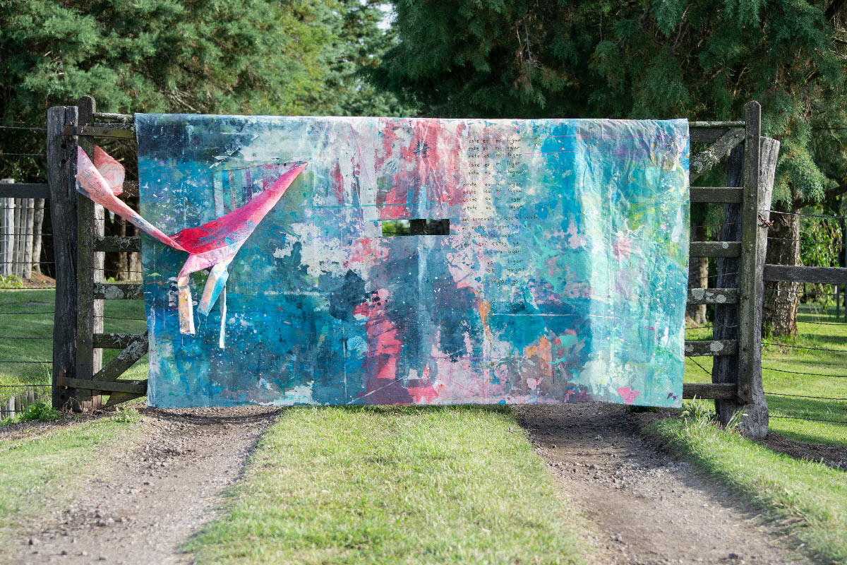El territorio es también un paisaje: el lugar donde existo, pienso, trabajo, me contradigo. No puedo separarme de él; me atraviesa como el agua. El clima afecta mi cuerpo, eso cambios entre El Niño y La Niña provocan la posibilidad de intensos verdes de verano o en su contrario que la tierra se raje en grieta de seca. Los colores de la naturaleza me alimentan, rosa, celeste, lila, verde, amarillo, un intenso naranja algunas veces, me producen sensaciones dulces pero también ácidas y desagradables, siento el calor hasta marearme, hasta desear irme de aquí, pero de repente me encuentro enamorada de la brisa, la lluvia y el color de la primavera que me atrapa como una araña a su presa.